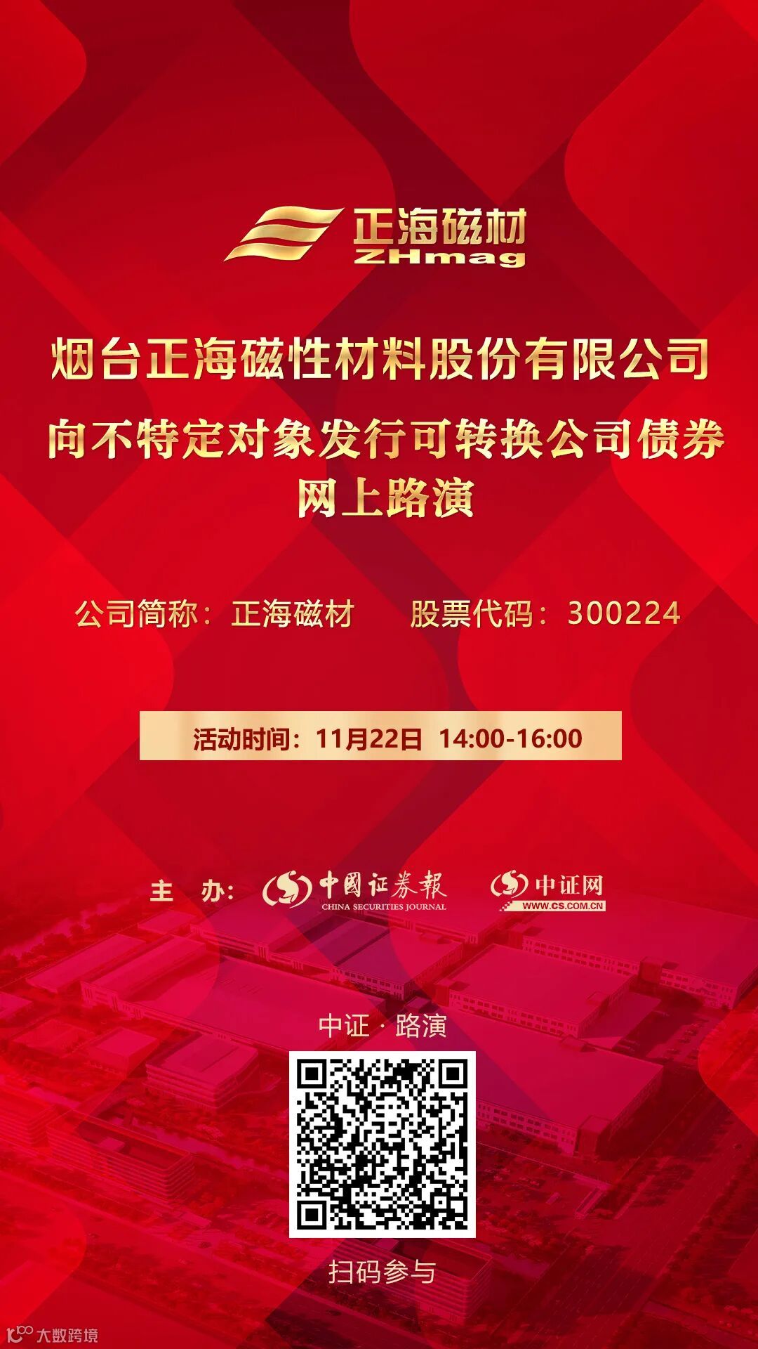 正海磁材向不特定对象发行可转换公司债券网上路演11月22日在中证网举行