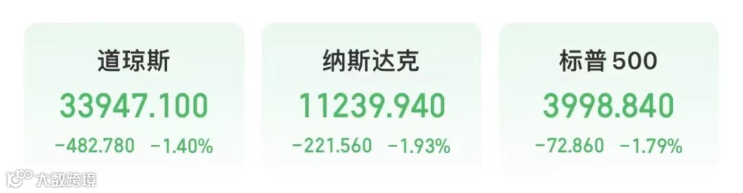 周一,纳指跌1.93%,标普500指数跌1.79%,道指跌1.4%。其中,纳指、标普500指数均创11月10日以来最大单日跌幅。