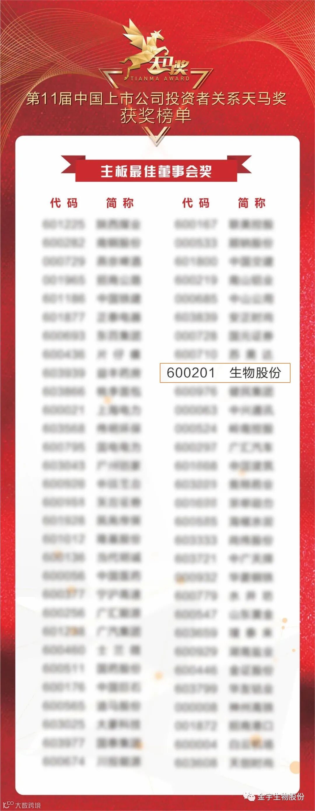 金宇生物股份摘获“主板最佳董事会奖”、“主板最佳新媒体运营奖”两大奖项。