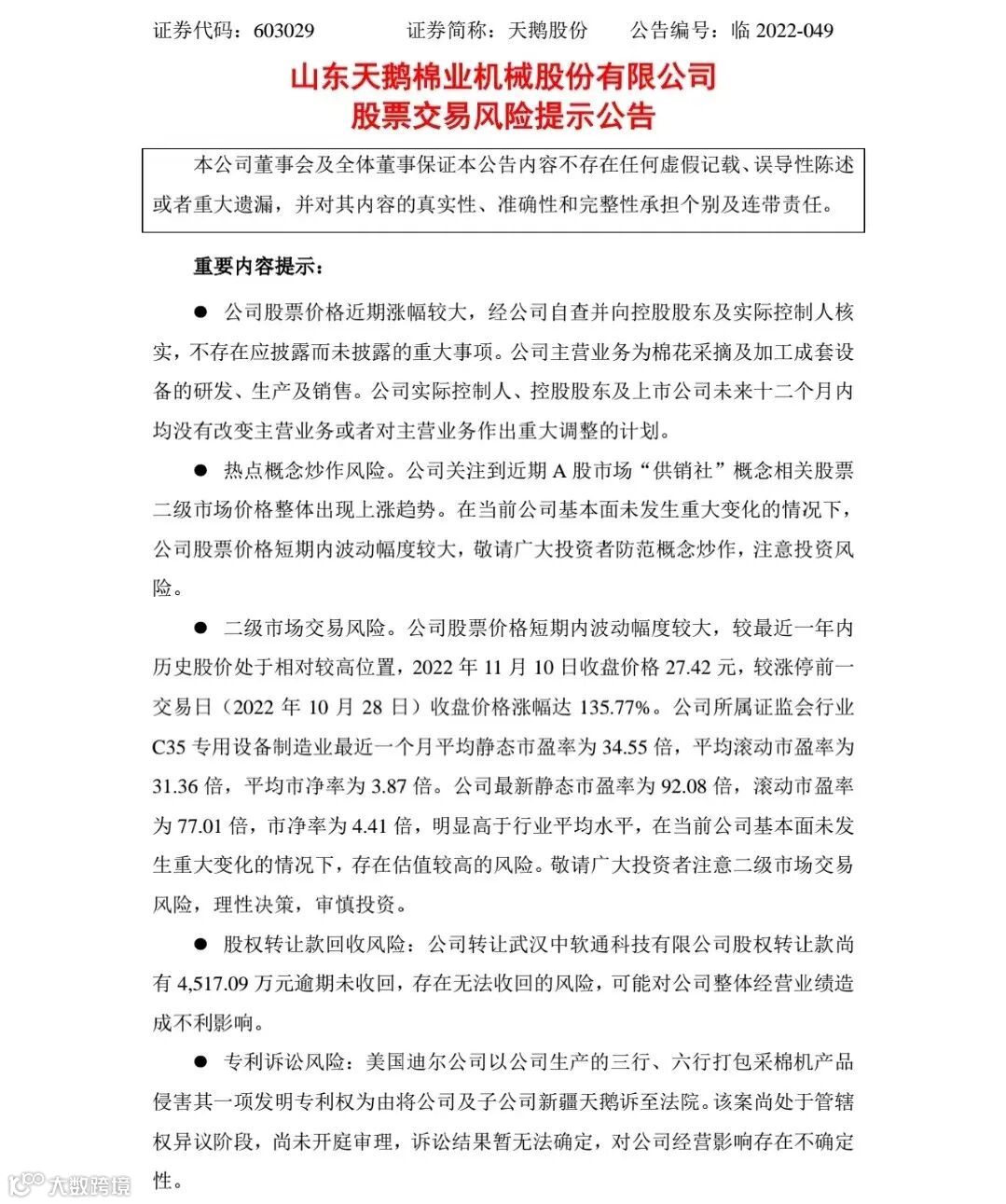 9天9板大涨135%!供销社概念股紧急提示风险!