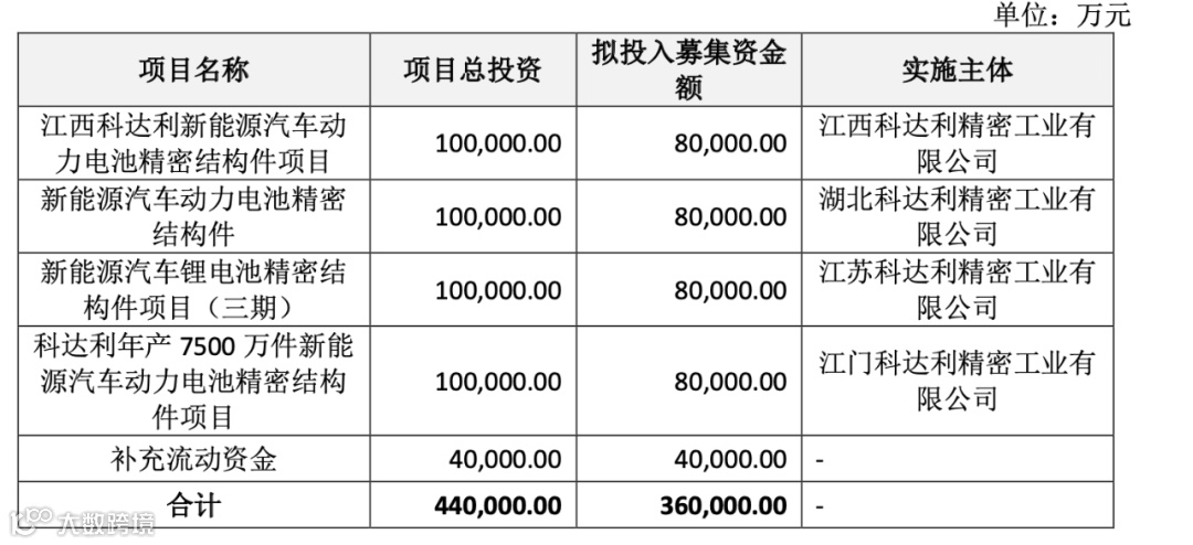 11月3日晚间,科达利发布定增预案,拟募集资金不超过36亿元,用于江西科达利新能源汽车动力电池精密结构件、新能源汽车动力电池精密结构件等项目。