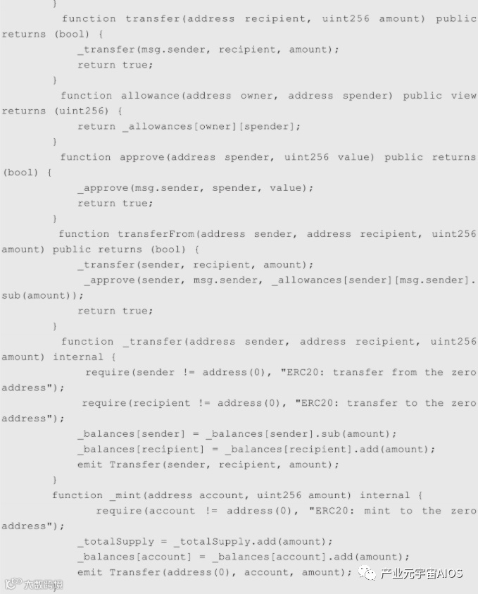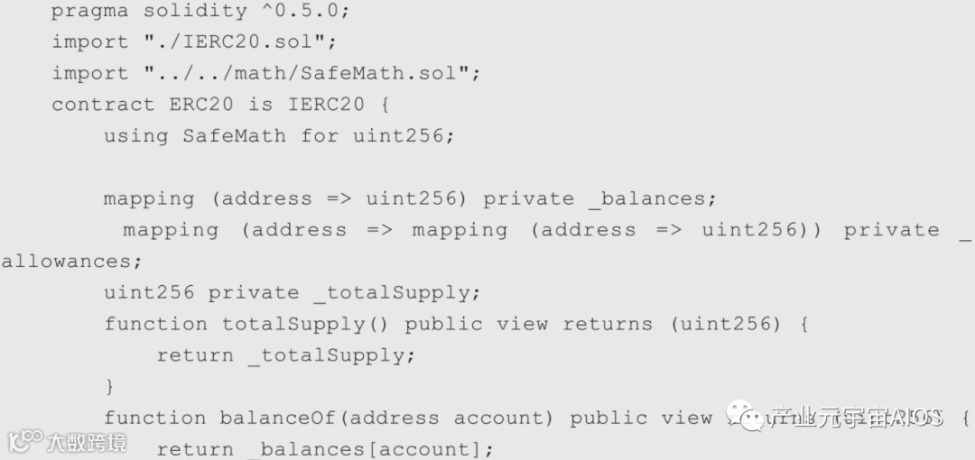 ERC20实现的关键是使用了两个mapping:_balances和_allowances,_balances用来保存某个地址的余额,_allowances用来保存某个地址授权给另一个地址可使用的余额。