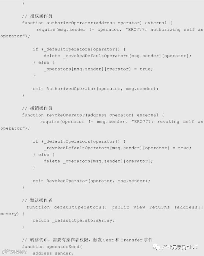 ERC777引入了一个操作员角色(前文所说接口的operator),操作员定义为操作代币的角色。