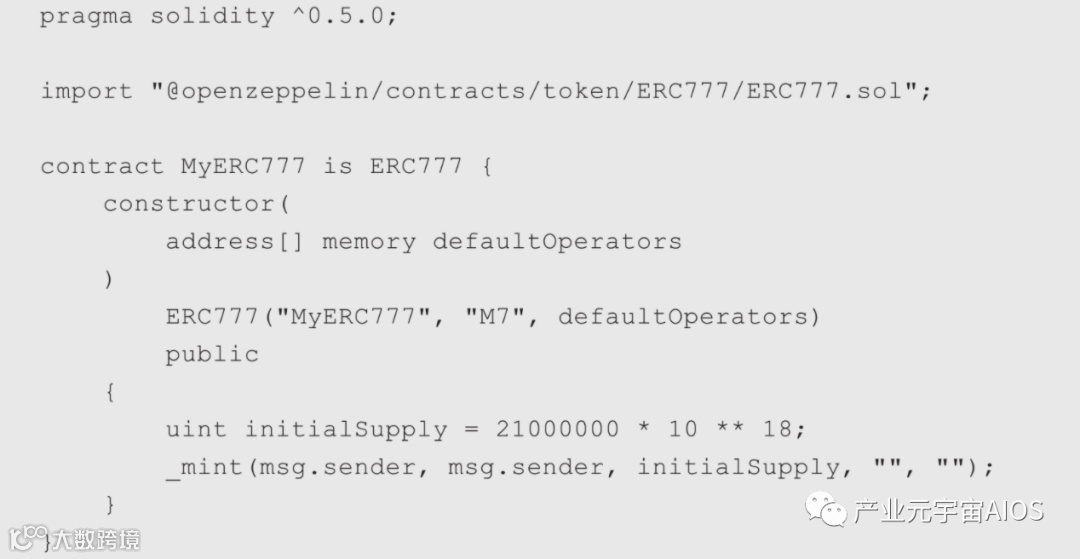 以上是一个模板实现,基于ERC777模板,可以很容易实现一个自己的ERC777代币,例如实现一个发行21 000 000个的M7代币的代码示例如下。