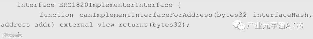 另一方面,如果一个合约要为某个地址(或自身)实现某个接口,则需要实现下面这个接口。