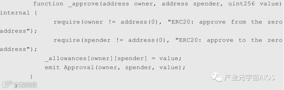 approve()函数通过修改_allowances变量来控制被授权人及授权代币数量(请对照上面代码的_approve()函数),_allowances[owner][spender]=value;的意思是:owner账号授权spender账号可消费数量为value的代币。
