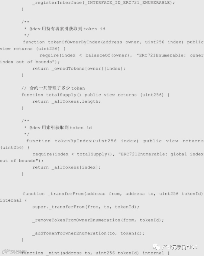 标准并没有限定ID标识码的规则,不过开发者可以选择实现下面的枚举接口,方便用户查询NFTs的完整列表。