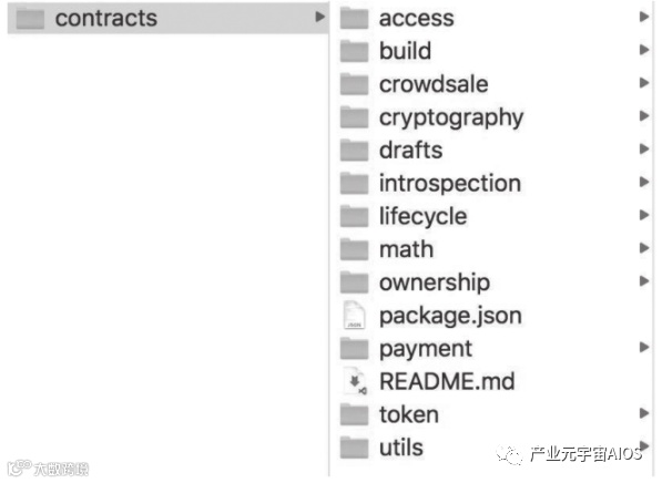 安装完成之后,在项目的node_modules/@openzeppelin/contract目录下可以找到合约源码,不同用途的合约分成了11个文件夹,如图8-1所示。