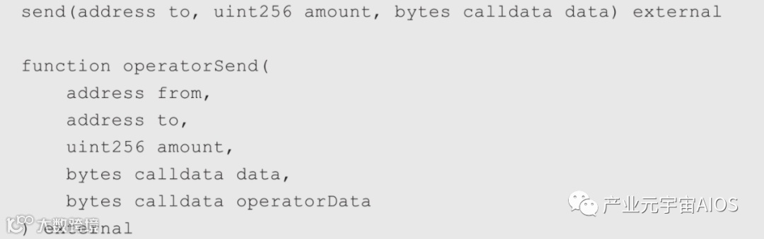 send()函数有一个额外的参数data用来携带转账的附加信息,同时send函数在转账时还会对代币的持有者和接收者发送通知,以方便在转账发生时,持有者和接收者可以进行额外的处理。
