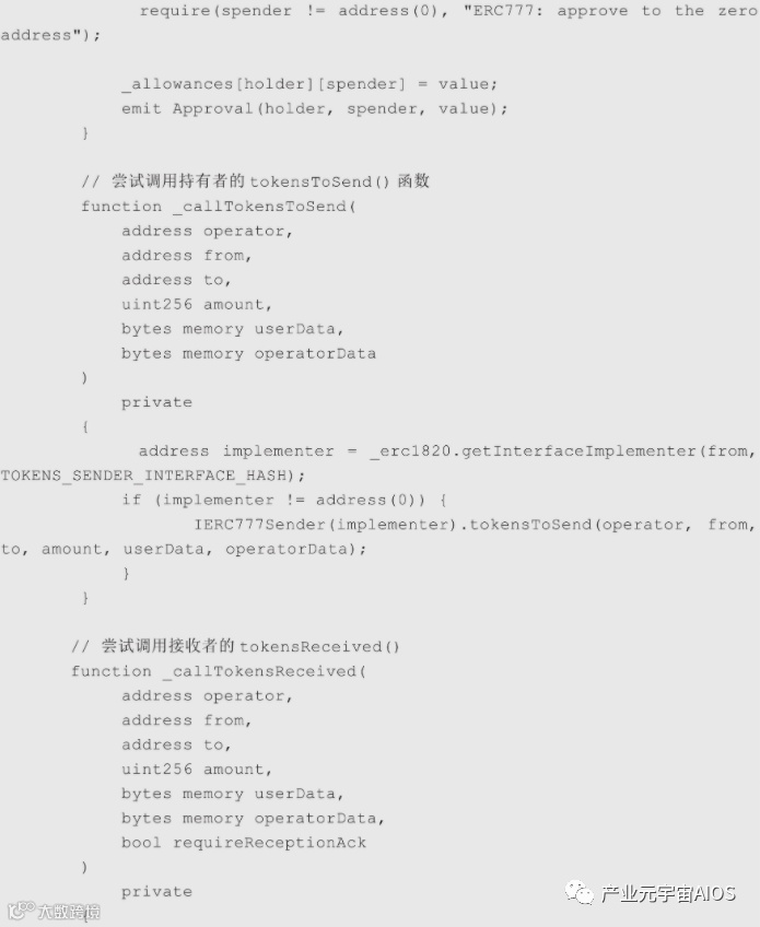(5)调用钩子函数及触发事件时,data和operatorData必须原样传递,因为tokensToSend和tokensReceived函数可能根据这个数据取消转账(触发revert)。