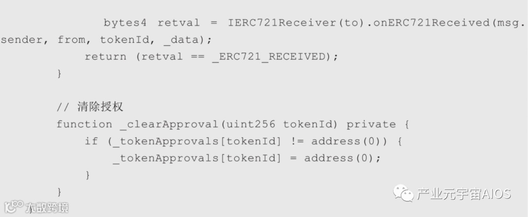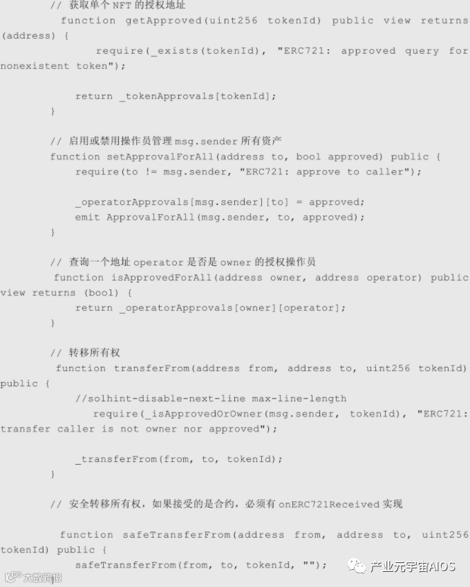 | 与ERC20中的approve、transferFrom不同,ERC20未明确定义批准地址的角色。 |