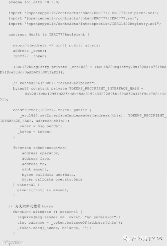 实现ERC777TokensRecipient下面就来实现下功德箱合约,示例代码如下。