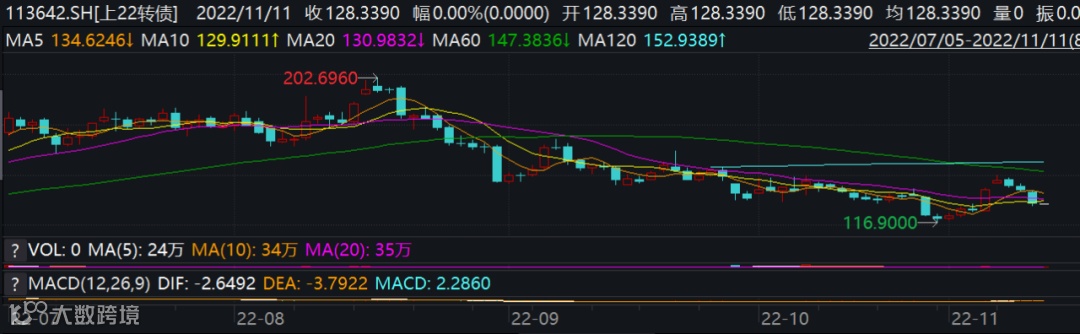 值得一提的是,上22转债已于11月11日起停止交易,今日,上22转债只能转股,不能交易。