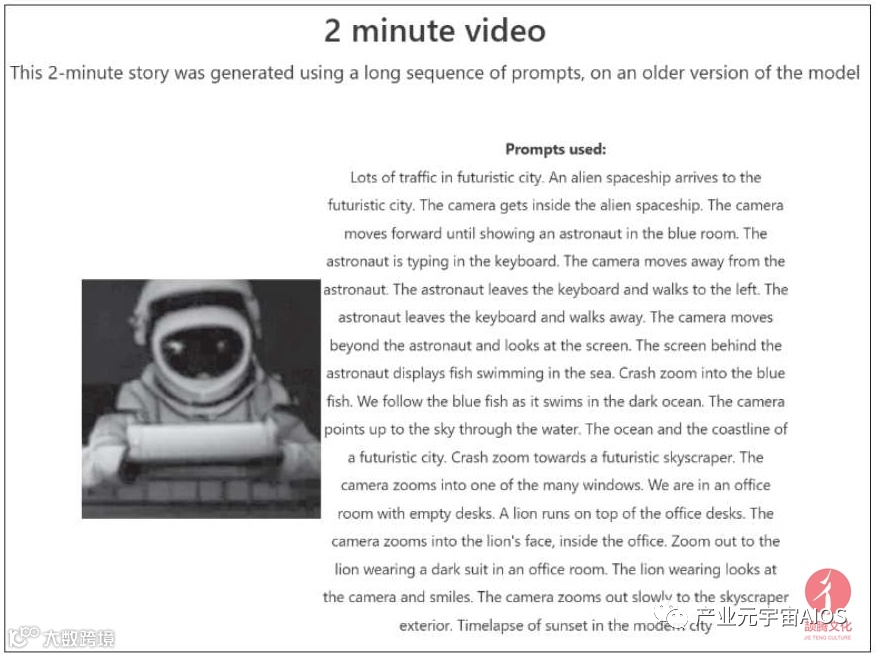 而Phenaki则拥有交互生成长视频的能力,可以任意切换视频的整体风格和场景,还能根据200个词左右的提示文本生成2分钟以上的长视频,如下页图所示。