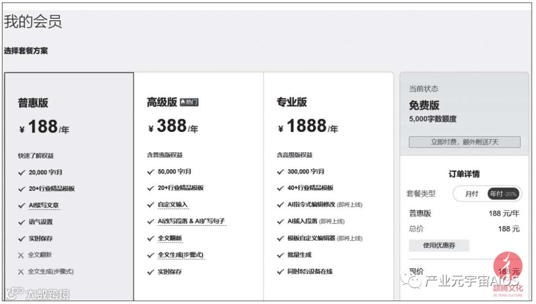 如果想获得质量更高的文章,则需要支付一定的费用购买会员套餐,如下图所示。