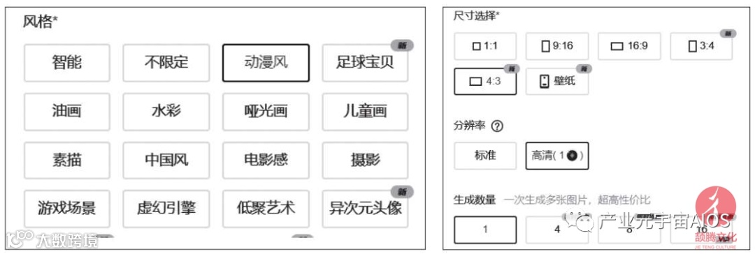 然后根据实际需求设定图像风格、输出尺寸、分辨率和生成数量,如下图所示。