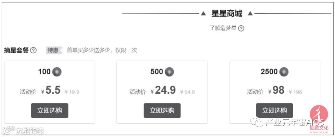 “造梦星”使用完毕后可付费购买摘星套餐,如下图所示。