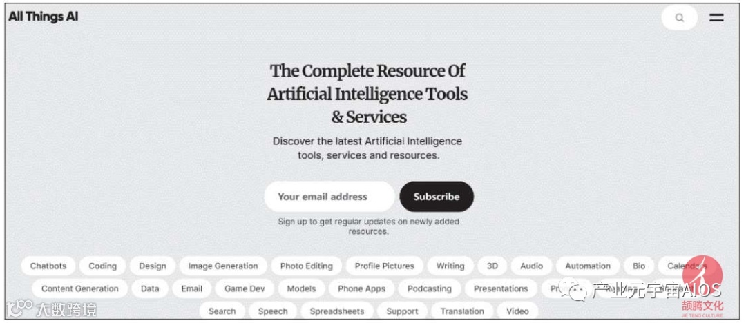 这里介绍一个网站https://allthingsai.com/,网页效果如下图所示。