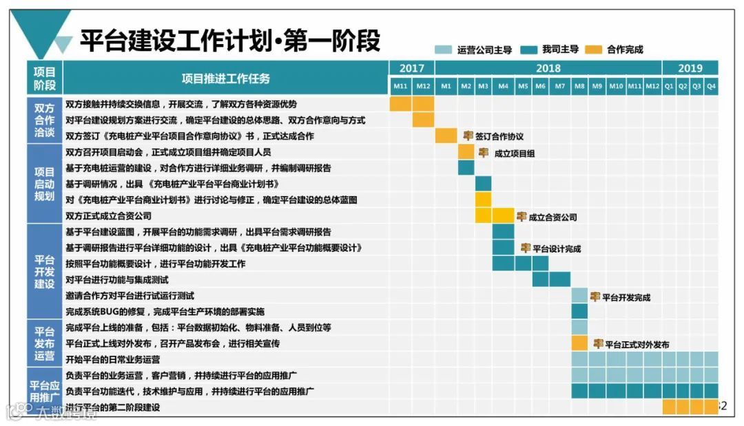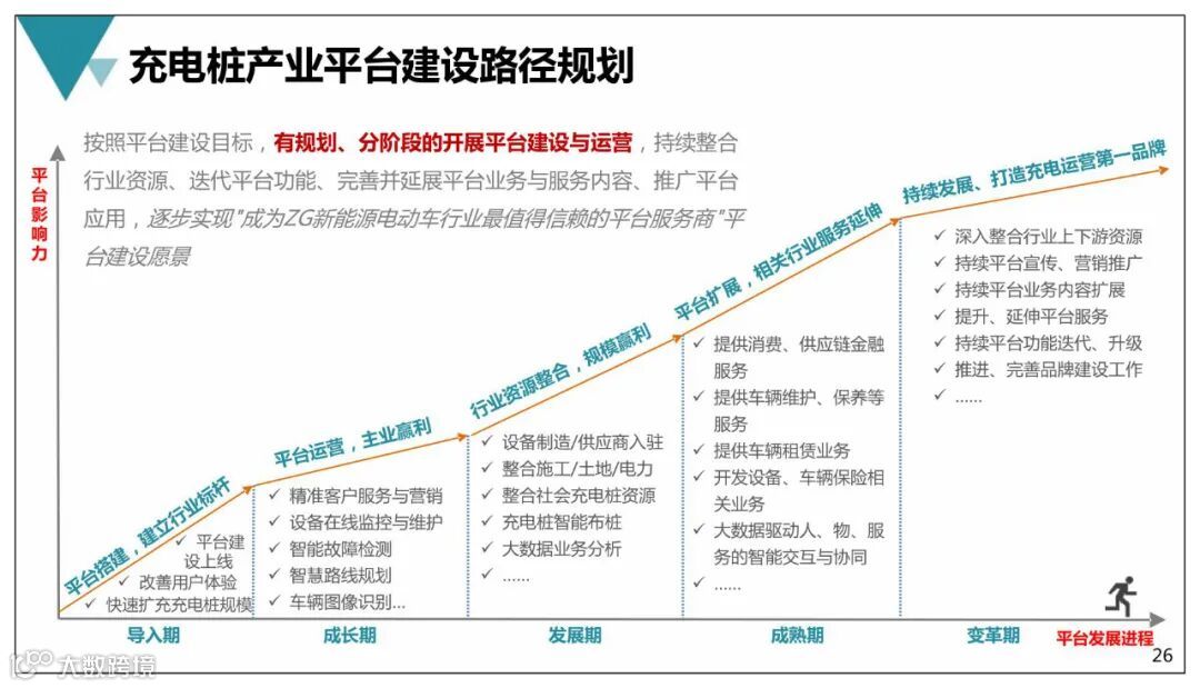 导读:充电桩产业平台按照平台建设目标,有规划、分阶段的开展平台建设与运营,持续整合 行业资源、迭代平台功能、完善并