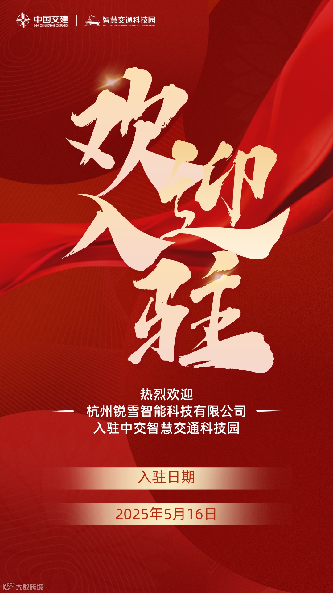 5月16日,中交智慧交通科技园迎来了一位新伙伴——杭州锐雪智能科技有限公司正式入驻!乔迁当日,园区负责人带队登门送上乔迁贺礼。