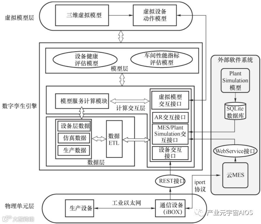 整个数字孪生系统包括了物理单元层、数字孪生引擎和虚拟模型层三部分。