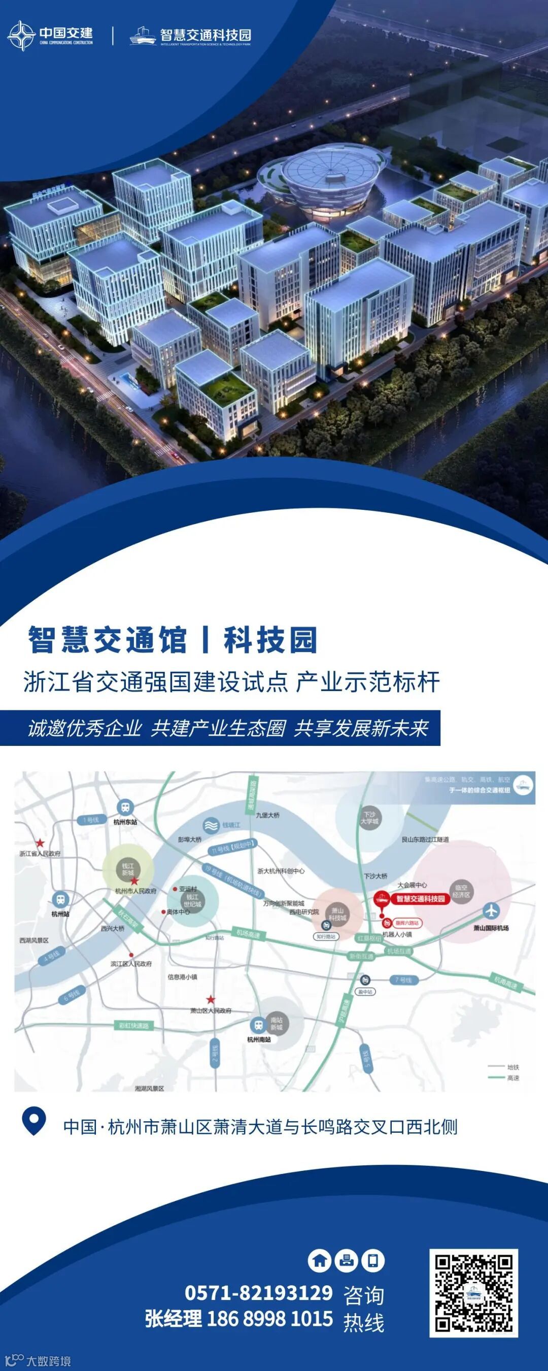 作为浙江省交通强国建设试点产业示范标杆的智慧交通科技园是萧山“一会一馆一园一镇”智慧交通发展体系的重要组成部分。本项目以智慧交通与数字交通为产业核心,聚集智慧公路、自动驾驶和智能建造等领域的创新资源,实现智慧交通建设与运营相关技术、产品、设备和服务在杭州萧山的产业化落地,衔接全产业链优质资源,构建智慧交通产业生态圈,推动交通产业价值链向中高端迈进。