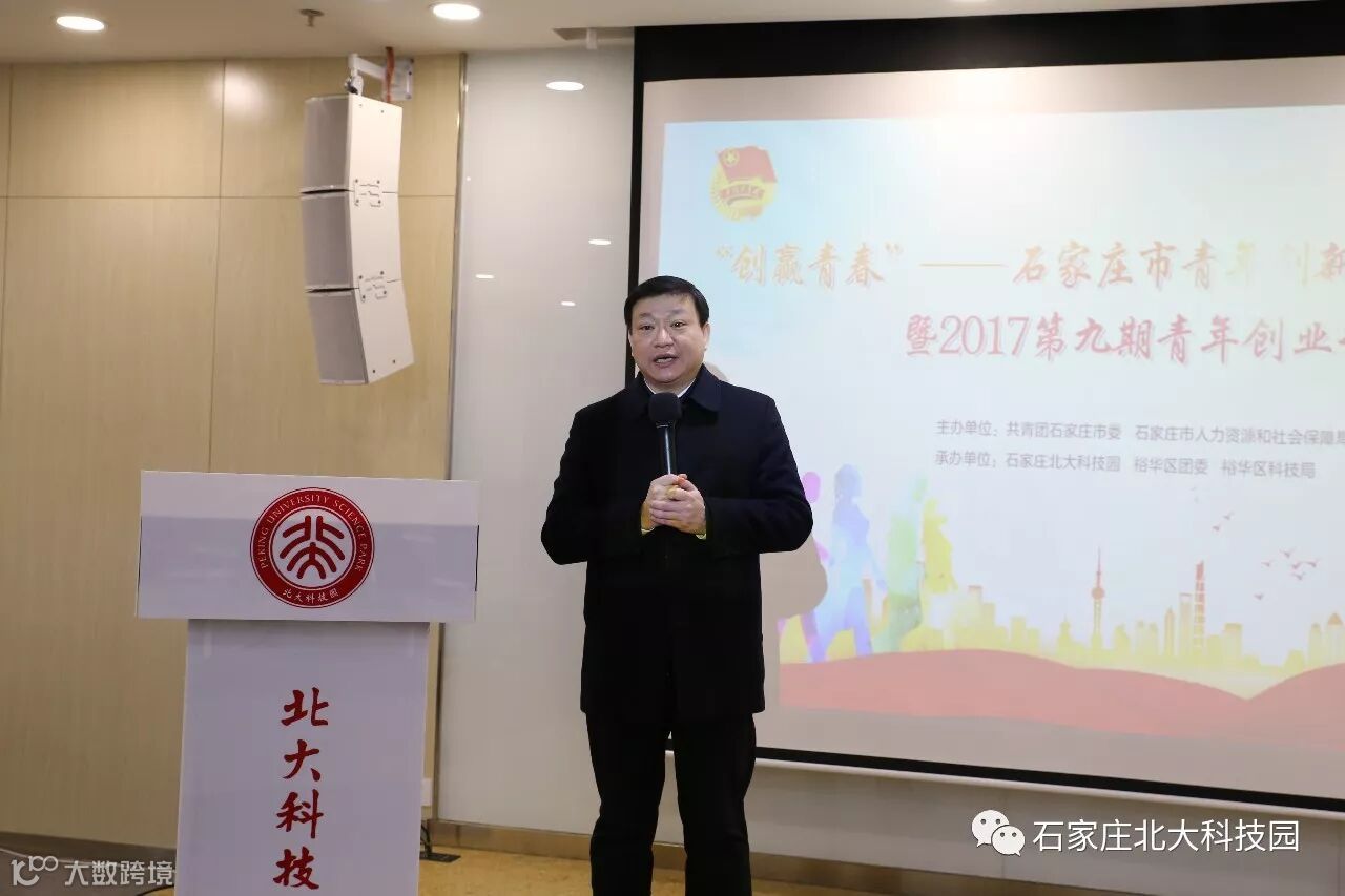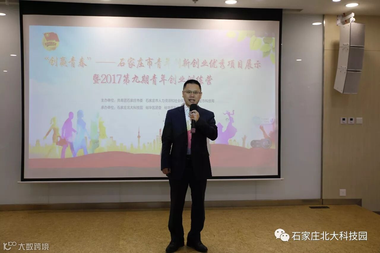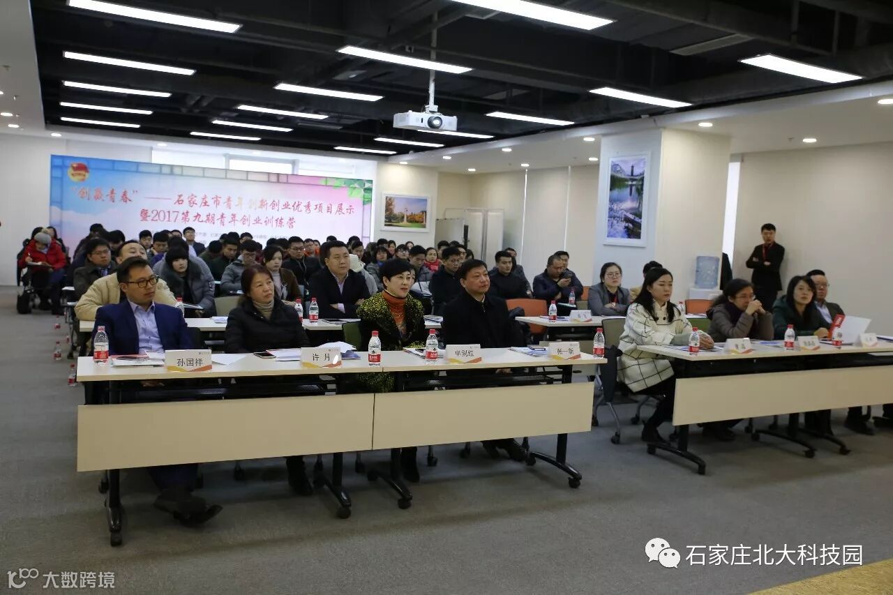 12月14日-15日,由共青团石家庄市委、石家庄市人社局、石家庄市科技局主办,石家庄北大科技园、共青团裕华区委、裕华区科技局承办的“创赢青春”——石家庄市青年创新创业优秀项目展示暨2017第九期青年创业训练营在石家庄北大科技园成功举办。团省委青年发展部部长张一新、团市委副书记曹晶、团市委青年发展与维护权益部部长申剑红、石家庄科技局高新处副处长张晶晶、石家庄就业服务中心培训管理科主任许月、石家庄北大科技园副总经理郭子卿、北京独创集团董事长孙国祥、河北人天通信技术有限公司总经理肖飞等领导、创业导师与青年创业者近百余人参加了本次活动。
