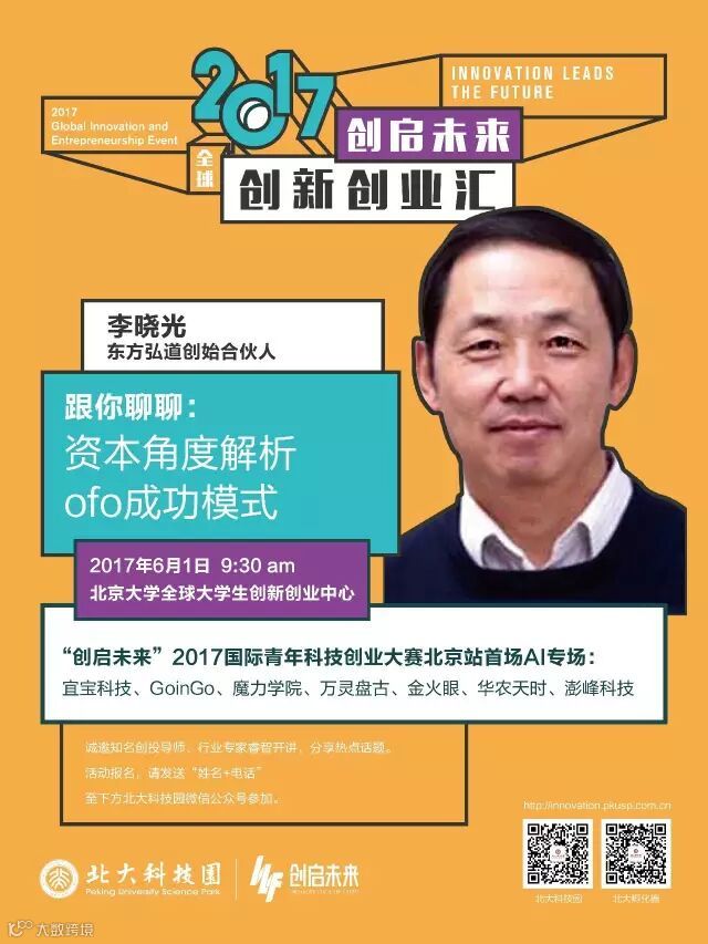 6月1日上午9:30,“创启未来”2017全球创新创业汇启动仪式暨“创启未来”国际青年科技创业大赛北京站开幕赛将于北京大学全球大学生创新创业中心拉开帷幕。
