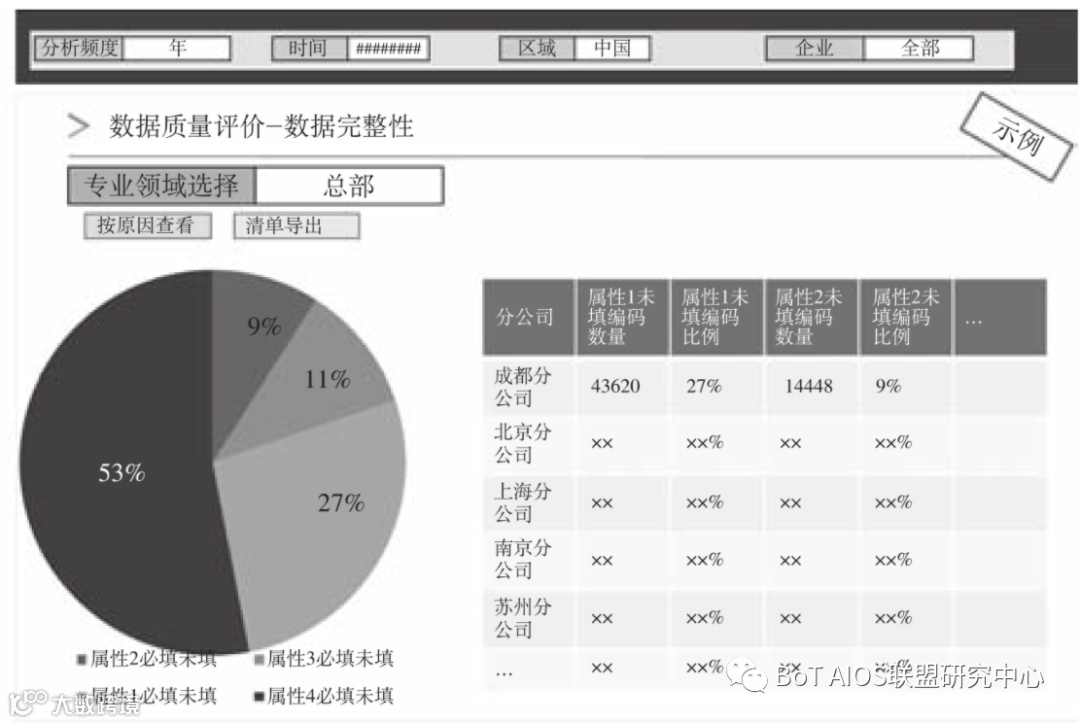 例如,公司某时段的数据完整性报表发现,不符合质量规则的编码比例较高,业务人员可查看成都分公司的问题编码所占比例,并进行相应的原因分析: