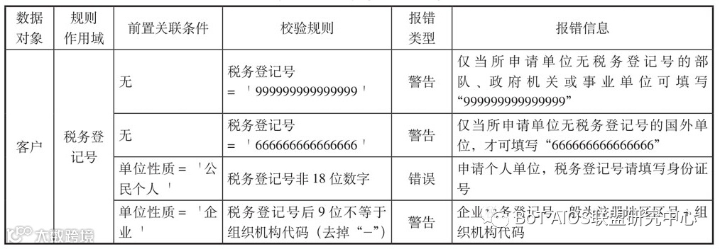 (2)数据规范性规则是指属性需符合某种下拉值、取值范围或正则表达式,如性别的属性值应为“男”或者“女”,税务登记号应为15位数字等。