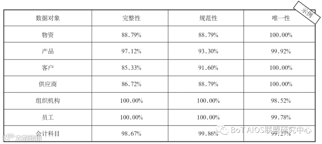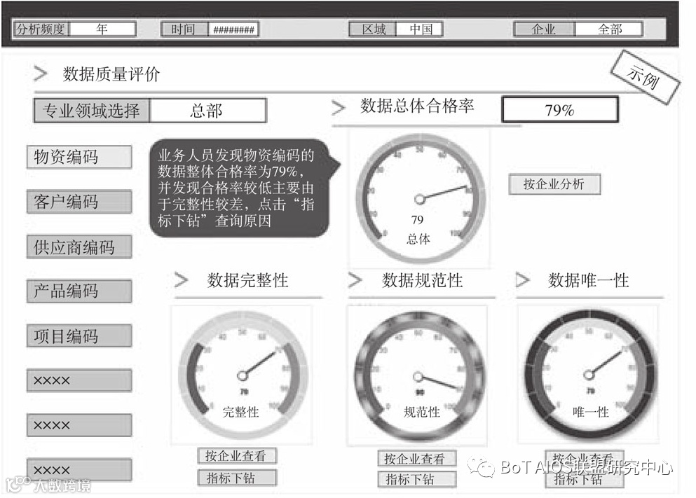 主数据质量评价指标主要包括完整性、规范性和唯一性等。对于不同的数据对象,需选取不同的指标进行评价。例如,某公司其数据质量分析指标选取物资分类、客户编码等。