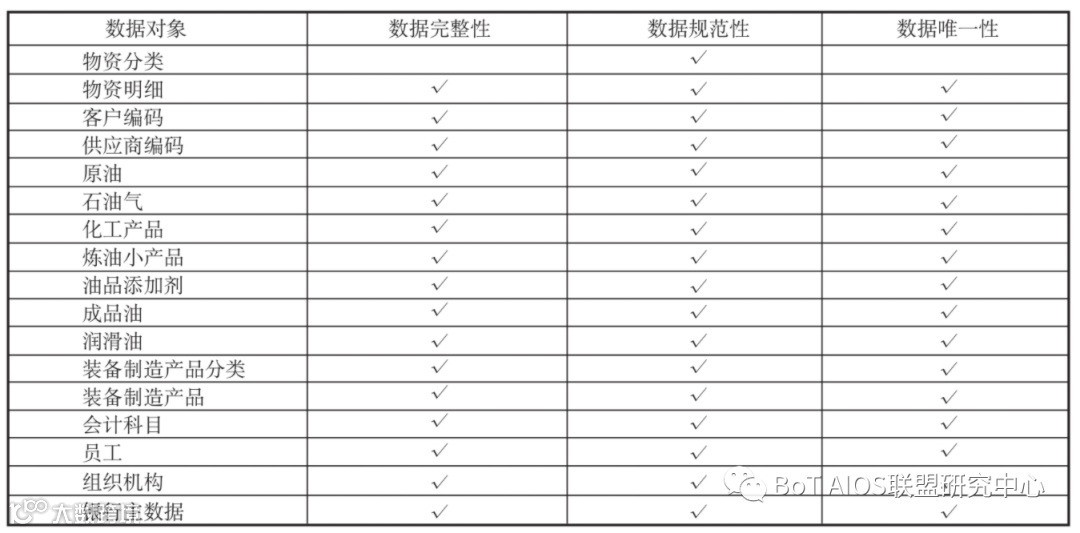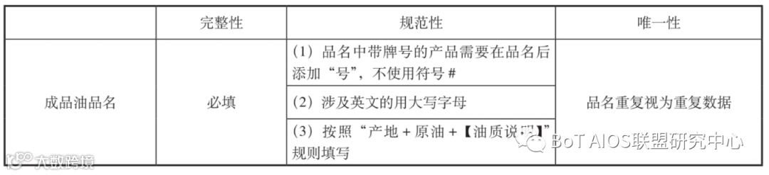将每一类主数据对象都按照完整性、规范性和唯一性进行整理,就形成主数据质量规则库。以某石油石化集团企业的成品油主数据为例