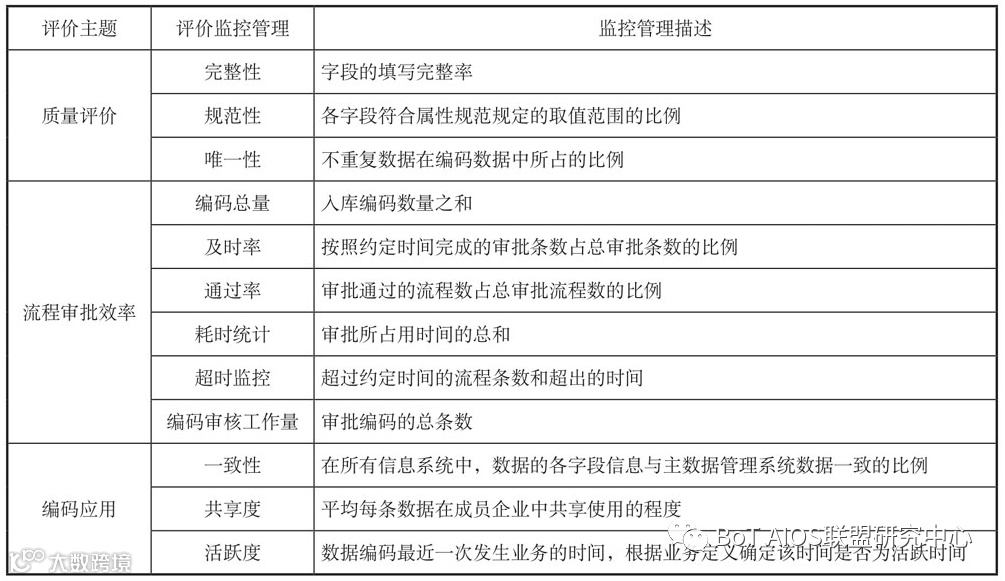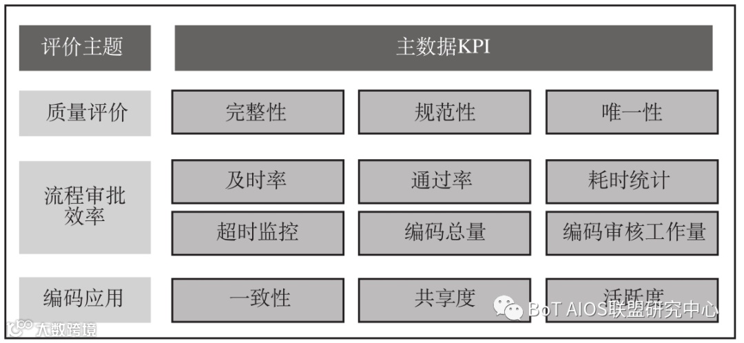主数据监控管理需要设计一套完善的主数据评价指标体系,以有效评价企业主数据的质量情况、编码流程执行情况及编码应用情况。