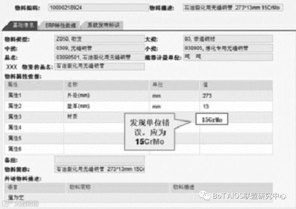 数据的规范性主要指数据的填写是否符合规范性规则的要求。例如,物资数据的规范性规则中,“厘米”的填写方式为“cm”,则信息系统内的物资数据属性单位为“厘米”时,必须使用“cm”,否则,将被认定为不符合规范;同理,“无缝钢管”的材质设定的规范性规则要求填写“15CrMo”,若填写“15GrMo”也是不符合规范的。