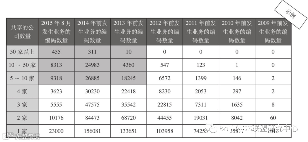 (3)风险型:数据编码被较少成员企业共享,但在近期被使用,需要进一步判断是否确实为新业务类型产生,还是由于一物多码造成的重复申请;