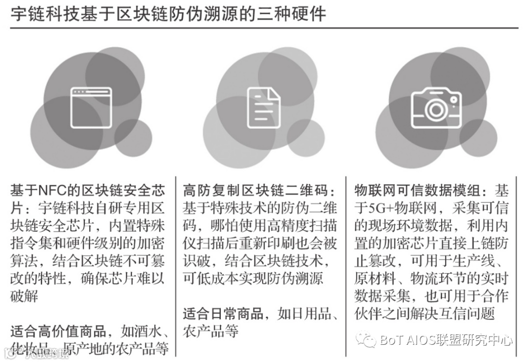 宇链科技开发了包含区块链功能的安全芯片,将安全芯片嵌入到现有的物联网终端上,保证从传感器获取的数据被加密并上传到区块链上,从而从源头上保证数据来源的真实可信性和不可篡改性;同时通过区块链来保护物联网终端本身的安全性,例如身份安全认证。