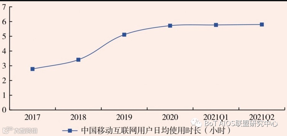 根据MobTech(袤博科技)的数据,2021年中国移动互联网用户日均使用时长为5.8小时,6小时的天花板依旧没有被突破,而且我们预计未来也很难突破。