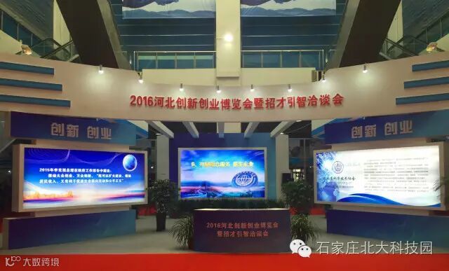 2016年9月23日, 河北创新创业博览会暨招才引智洽谈会在石家庄召开,石家庄北大科技园作为河北省众创空间的标杆企业受邀参展。作为河北首届创新创业博览会,本次展会汇聚了河北省四十多家创新创业及高新技术服务企业参加,着眼于促进河北省创新创业市场和资本有效对接, 吸优秀创业创新项目在河北发展壮大,吸引中高级人才在河北创业兴业。
