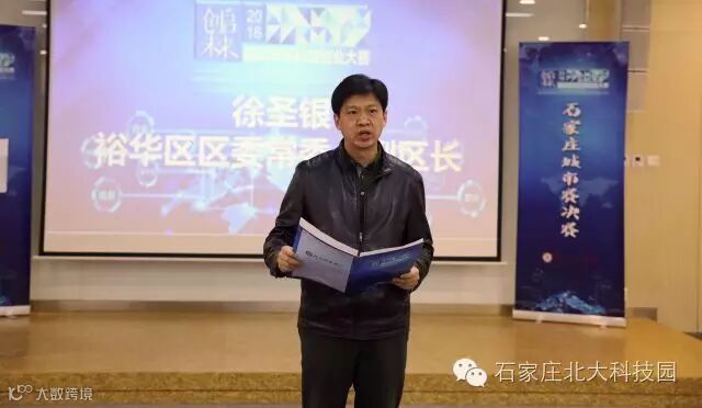 “相信梦想,创启未来。”2016年11月3日,由石家庄市裕华区人民政府、北大科技园、中国电子系统工程第四建设有限公司共同主办的“创启未来”2016国际青年科技创业大赛石家庄城市赛决赛暨颁奖典礼在石家庄北大科技园五四学堂盛大举行。裕华区区委常委、副区长徐圣银,区科技局局长边庆敏,区团委书记付红瑜,北大科技园副总裁冯建新、副总裁田瑞波及北大孵化器副总经理、石家庄北大科技园负责人郭瑞莅临现场。