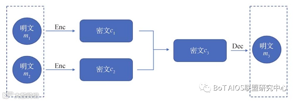 由于全同态加密算法实用性的限制,在联邦学习中,主要使用半同态加密算法实现对联邦其他参与方私有数据的操作。