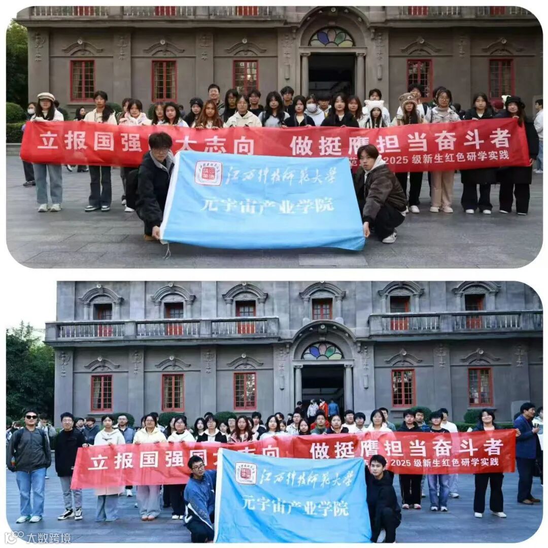 以元宇宙技术为纽带,以红色教育为内核,一场沉浸式红色研学活动走进南昌八一起义纪念馆,组织师生实地探寻革命足迹、感悟历史初心。活动中,大家跟随讲解员的脚步,在珍贵文物与历史图片前驻足聆听,重温 “八一枪声” 背后的革命故事与奋斗征程,更结合专业优势探讨红色场景数字化还原、革命故事沉浸式传播的创新路径,让红色基因在技术赋能与实地体验中深度传承。
