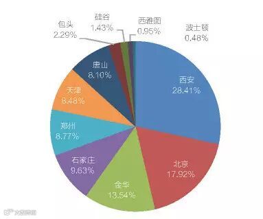 2016年项目来源分布显示,报名参赛的1049个项目中,西安赛区首次成为分赛区便跃居分赛区报名项目数量首位;北京赛区因地方创业氛围浓厚,报名参赛项目总数位于分赛区次席;金华赛区在承办总决赛的情况下,报名参赛项目大幅提升,位于第三。