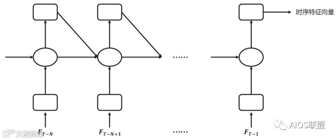 将该序列作为递归神经网络的输入得到用户时序行为特征,其中每一天的输入数据FT-i包括是否为工作日;当前24个时间区间段中是否有出行记录等。