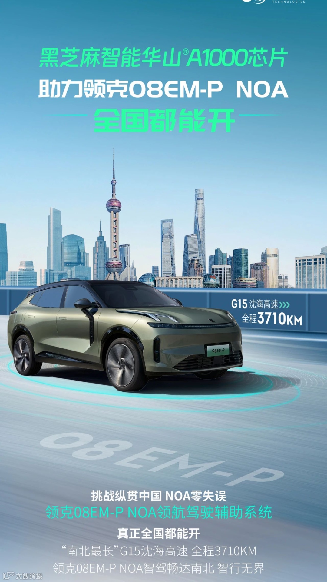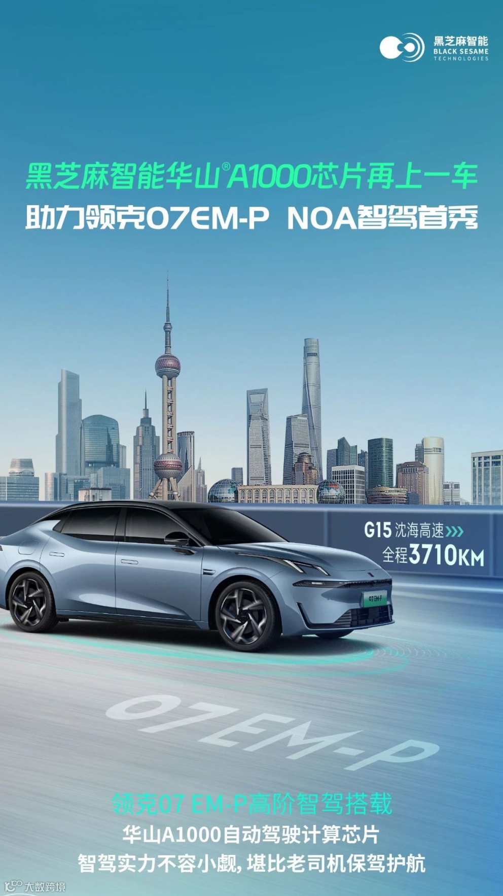 近日,黑芝麻智能宣布,公司华山A1000芯片助力领克08 EM-P NOA领航驾驶辅助系统实现了智驾接力零失误。同时,华山A1000芯片再获上车量产,同样搭载了华山A1000芯片的领克07 EM-P接力领克08 EM-P完成了智驾首秀。