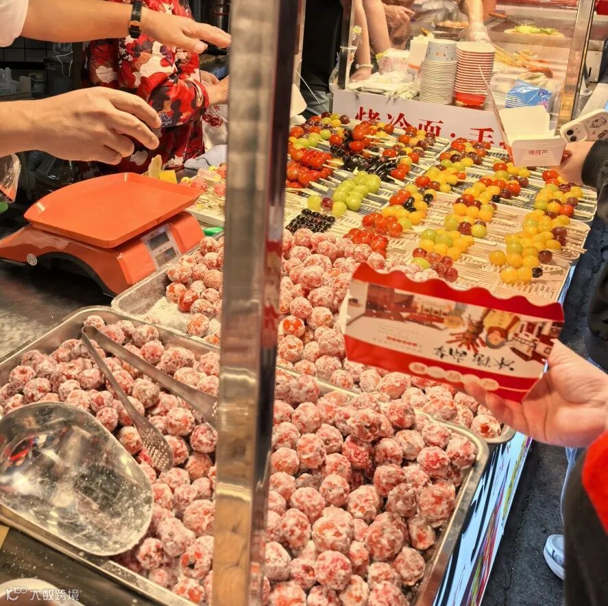 山楂的表面裹着一层晶莹剔透的糖衣,如水晶般璀璨,散发着甜蜜的气息。