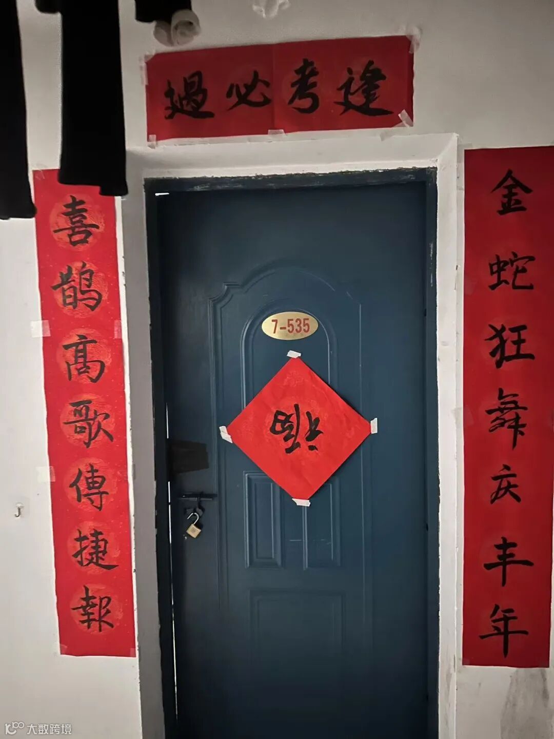 但门上张贴的新年装饰