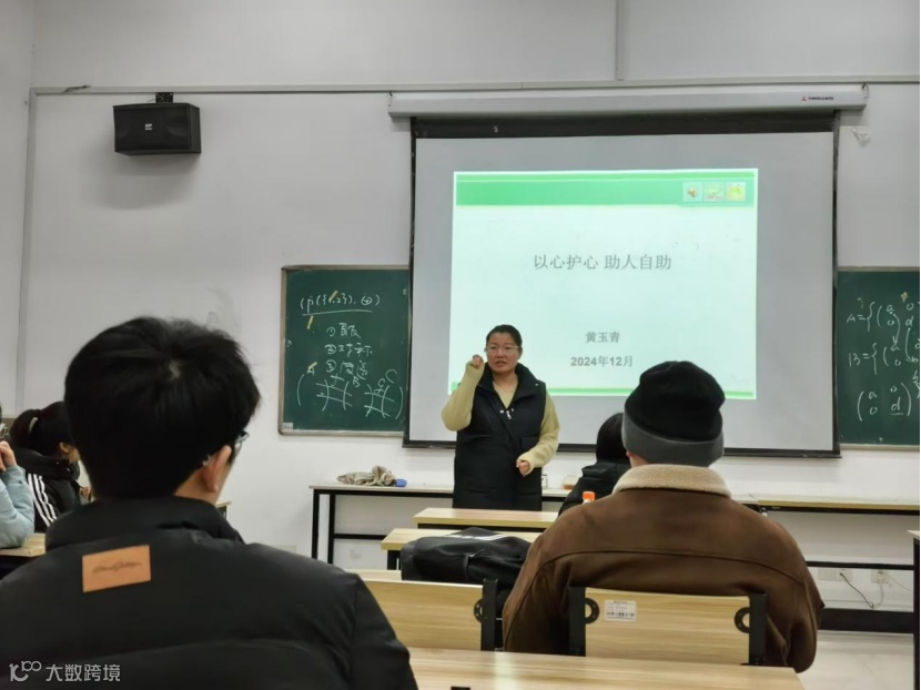 培训会上,黄玉青老师围绕以心护心助人自助为主题,结合自身生活、工作经历,活用案例分析和问题研究向同学们深入讲解了认识心理健康、大学生常见心理问题、朋辈助人者的职责和自我照护等内容。她重点强调了学生心理危机的识别与自我防护,并详细介绍了呼吸放松、运动放松和学会求助等多种情绪急救方法和学校心理咨询的预约方式,寄语心理委员们“助人自助、做自己和他人的小太阳!”