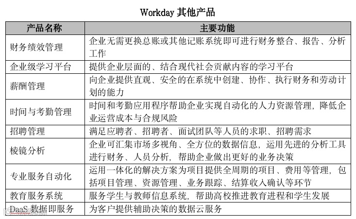 Workday还围绕HCM和财务管理两款核心产品打造了一系列的系统应用。