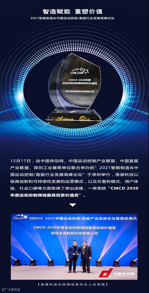 洛源科技获年度运动控制领域最具投资价值奖