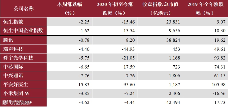 同时,我们分别追踪跨市场指数和个股行情动态,对于上市公司,暂时选择了最具代表性的14只美股及8只港股。